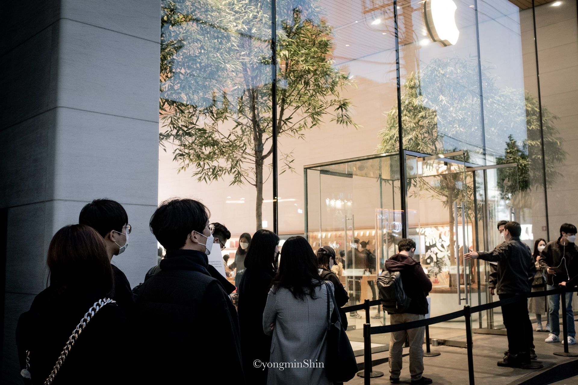 Maximum occupancy. The Apple Store had just reopened after temporary closure. Garosu-gil, Seoul, South Korea.Fujifilm X100F