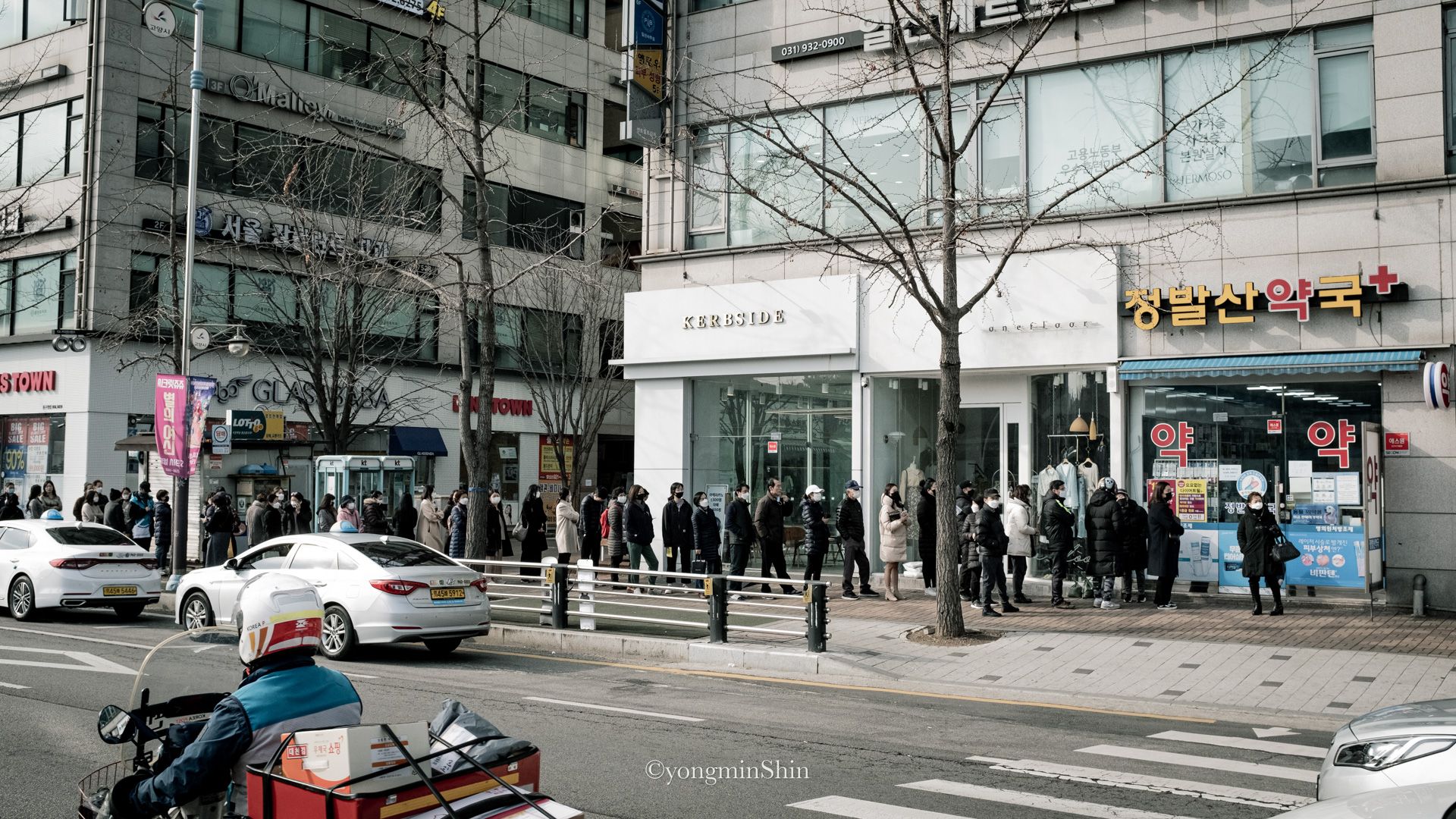 Long queues forming for mask supplies. Sinchon, Seoul, South Korea.Fujifilm X100F